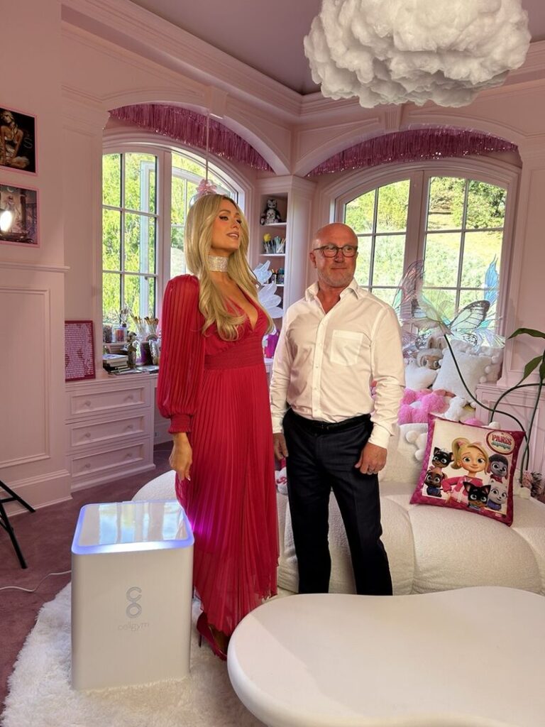 Rainer Goitia, CEO de Cellgym, junto a Paris Hilton en su residencia de Los Ángeles.